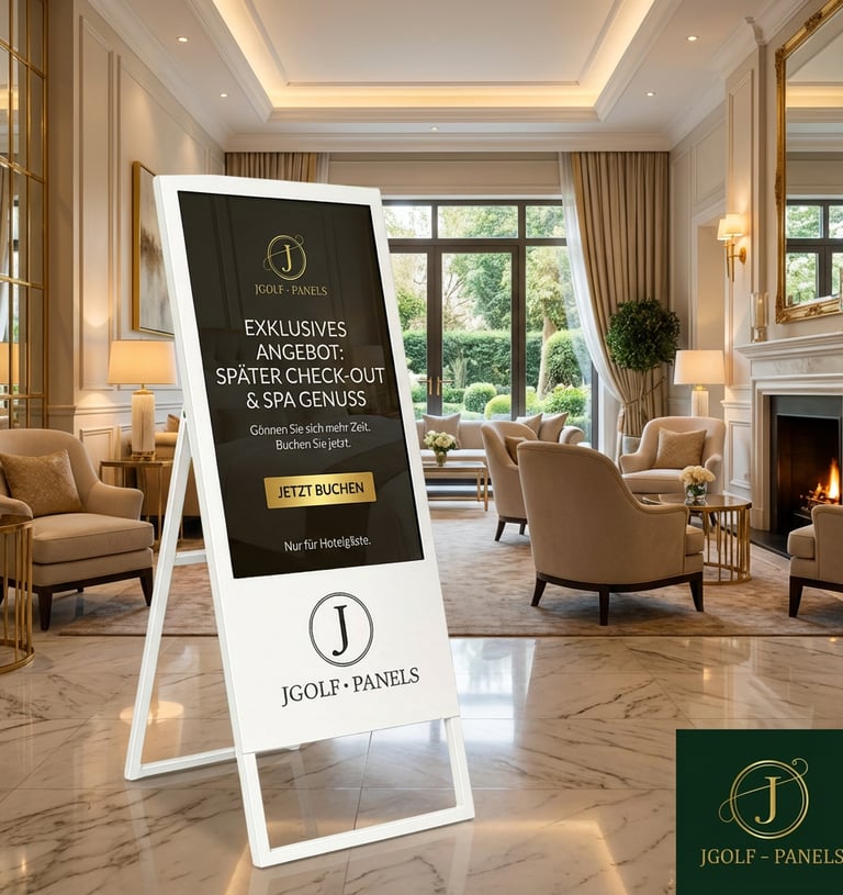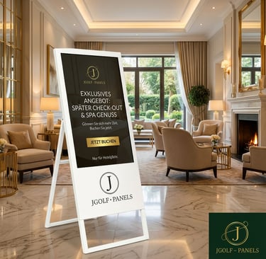 Tee-Times, Informationen und Werbung für Golfclubs & Luxus-Hotels – in verschiedenen Größen.