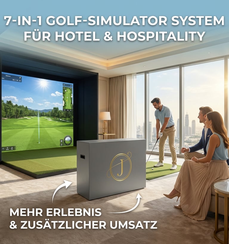 Vier starke Produkte, die das Golfspiel neu erleben lassen: Simulator, Panels, Clubhaus und Tent – alles aus einer Hand.